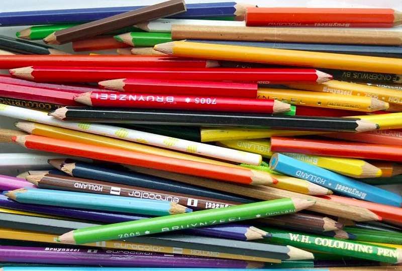 Олівці ділять на прості (з відтінками від сірого до майже чорного) та кольорові.